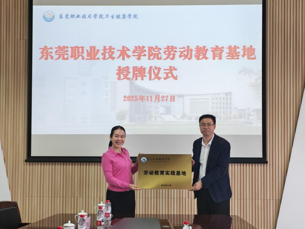座谈会上,卫生健康学院副院长毛秀华介绍了学院结合专业性质展开的美育劳动教育工作情况、活动形式和特色。相关专业负责人分享了各自专业通过课程建设、技能竞赛、社团活动、志愿者服务以及学生管理途径开展美育、劳动教育工作的做法。会上,双方就药植园建设、《护理礼仪》精品课程建设、康复协会建设工作中遇到的具体问题展开了深入探讨并提出了建设性意见。宋海燕书记表示卫院将进一步结合专业特点梳理工作思路,力争培育打造出具有学院专业特色的美育劳动教育文化品牌。我院行政负责人肖庆丰表示,作为美育和劳动教育的统筹部门,通识学院将全力协助二级学院推进相关工作,并确保与各职能部门保持顺畅沟通,打通工作渠道,助力二级学院美育和劳动教育工作的顺利推进。随后,在会场双方举行了东莞职业技术学院劳动教育实践基地授牌仪式